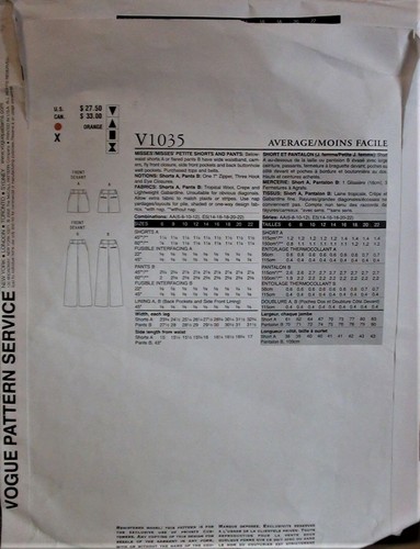 Vogue Designer Pattern V1035 Misses Miss Petite Shorts Pants Sz 6 8 10 12 Ucff Ebay